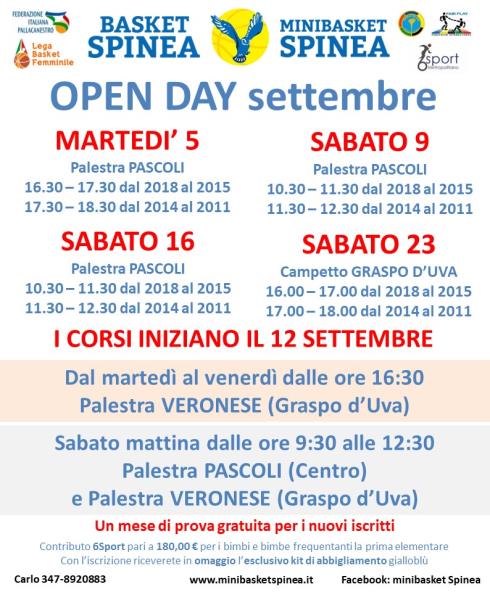 OPEN DAY MESE DI SETTEMBRE 2023