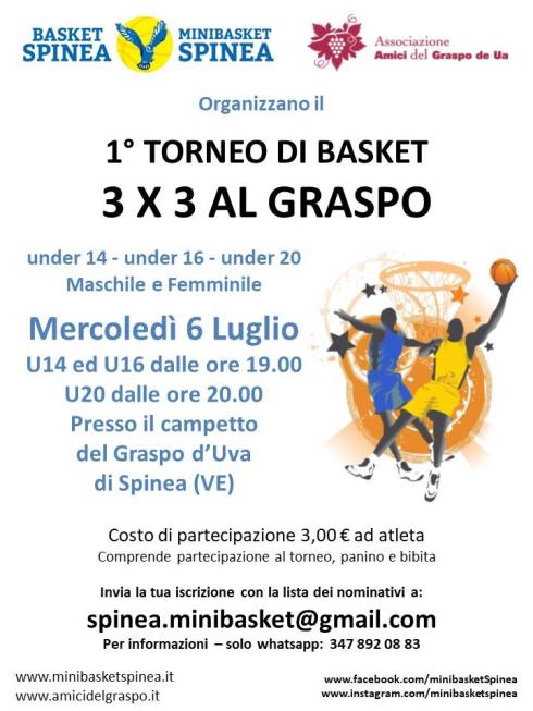 Per le iscrizioni scrivete una mail a spinea.minibasket@gmail.com oppure inviate un messaggio tramite whatsapp al numero 347 892 08 83 con la lista dei partecipanti (max nr 4 per squadra).