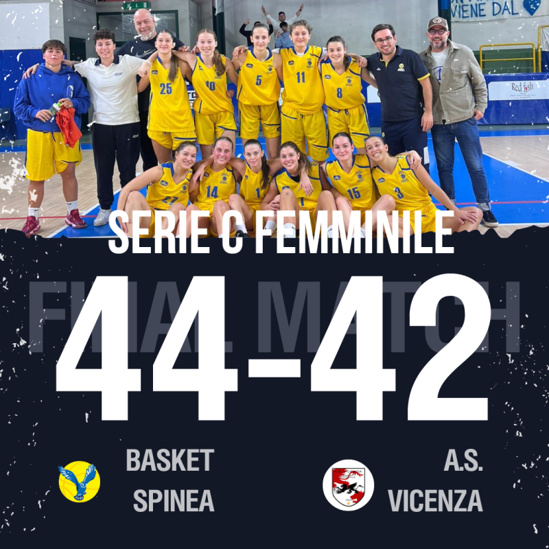 La prima vittoria stagionale delle nostre ragazze arriva alla seconda giornata del girone di andata, tra le mura amiche del PalaStefani di Marghera contro Vicenza. Il primo quarto è molto equilibrato, nel quale Vicenza chiude avanti di 1 punto sulle gialloblù (11-12). Nel secondo quarto inizialmente Spinea riesce a prendere un leggero vantaggio, ma Vicenza non ci sta e al termine del primo tempo il punteggio è quindi a favore della formazione ospite (23-31). Nel terzo quarto entrambe le squadre producono poco a livello offensivo, rispettivamente 4 punti per Spinea e 5 per Vicenza, che conclude nuovamente in vantaggio con il punteggio di 27-36. Nell'ultimo tempo le gialloblù reagiscono e realizzano 17 punti, contro i 6 di Vicenza, riuscendo così a portare a casa i primi 2 punti della stagione!